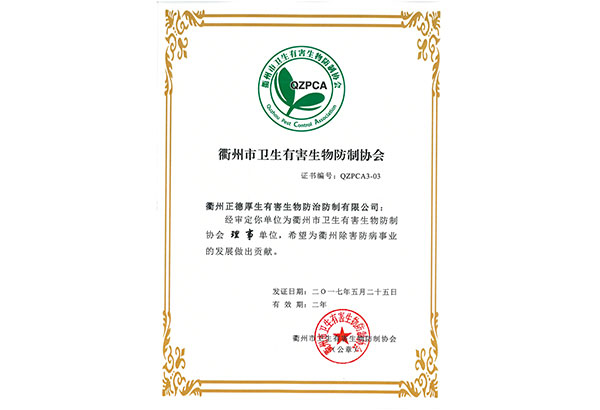 江德宜居环境科技有限公司Cؓ(f)江省除四害U技协会(x)AU资质,同时也是江省除四害U技协会(x)?x)员单位、中国有害生物防制协?x)?x)员单位,是国内专业从事虫x(chng)制管理(PMPQ技术与理念的专业虫害管理公怹一?/p>